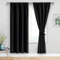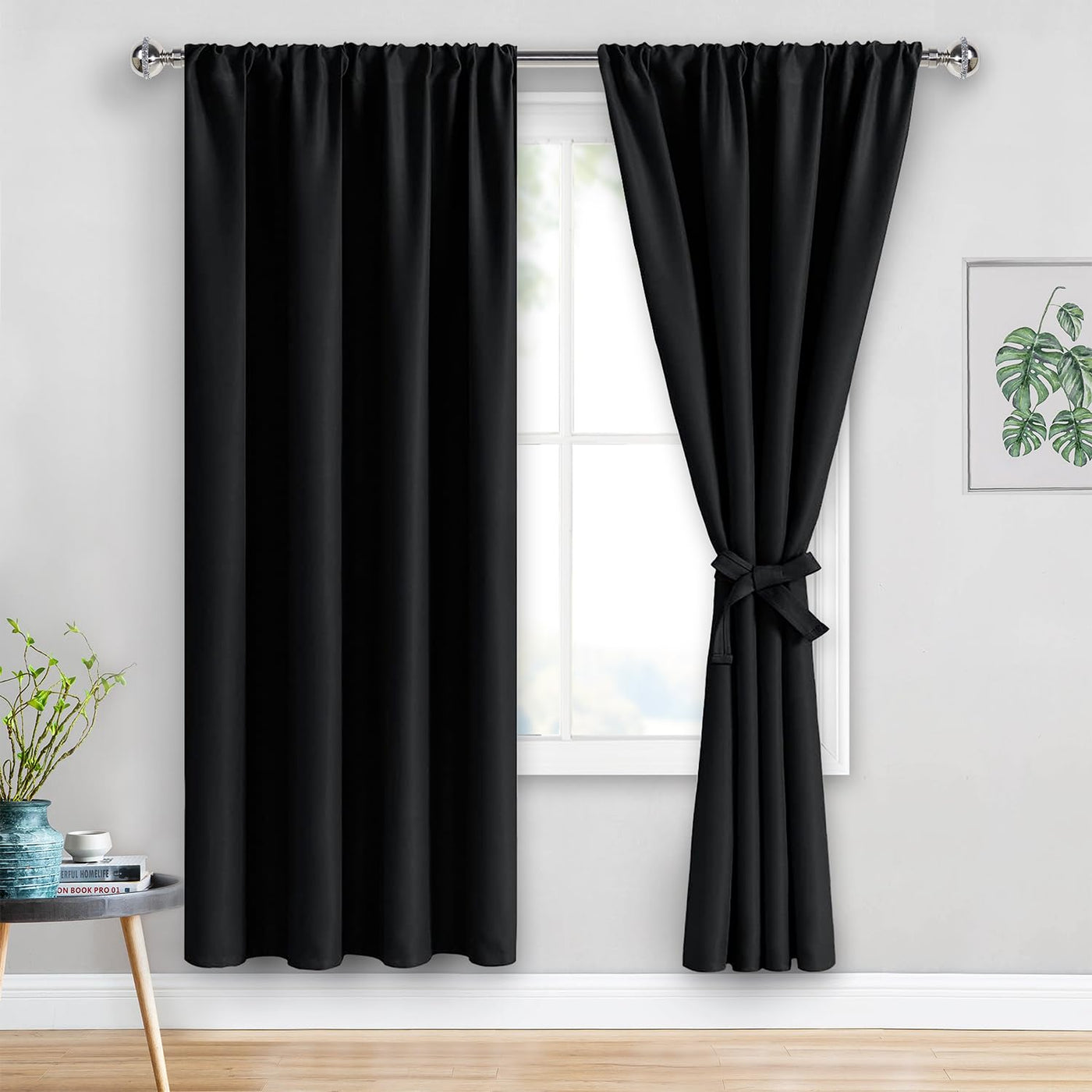 Jiuzhen Blackout Curtains For Bedroom - Thermal Insulated Room Darkening Rod Pocket Curtains For Living Room, Set Of 2 Panels With Tiebacks, 52 X 72 Inch Length, Black
