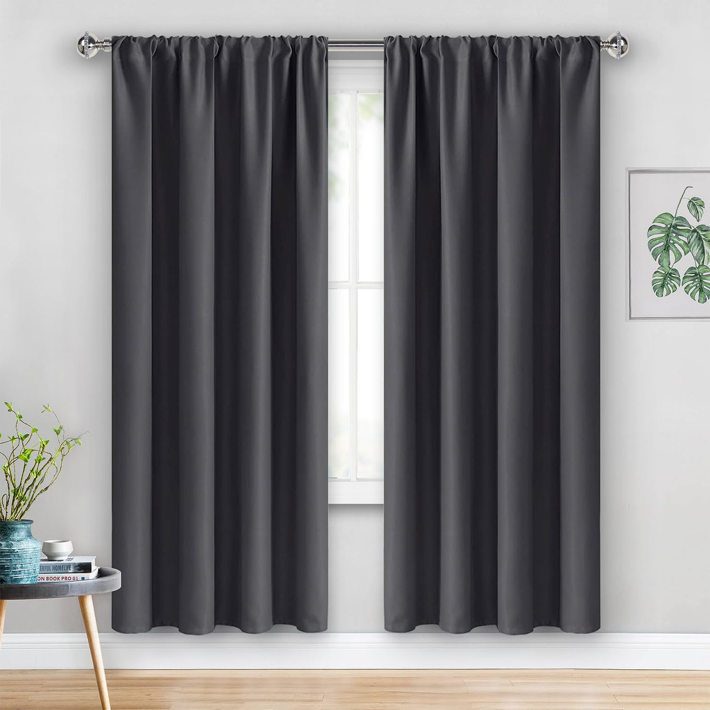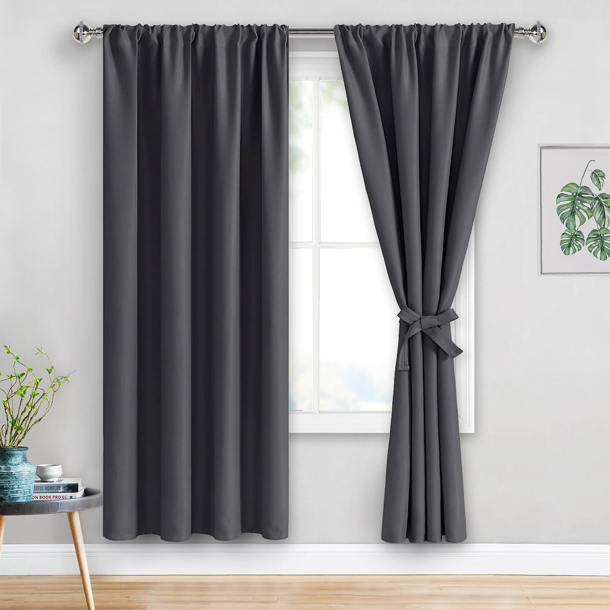 Jiuzhen Blackout Curtains For Bedroom - Thermal Insulated Room Darkening Rod Pocket Curtains For Living Room, Set Of 2 Panels With Tiebacks, 52 X 72 Inch Length, Dark Grey