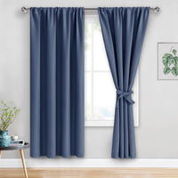 Jiuzhen Blackout Curtains For Bedroom - Thermal Insulated Room Darkening Rod Pocket Curtains For Living Room, Set Of 2 Panels With Tiebacks, 52 X 72 Inch Length, Dusty Blue
