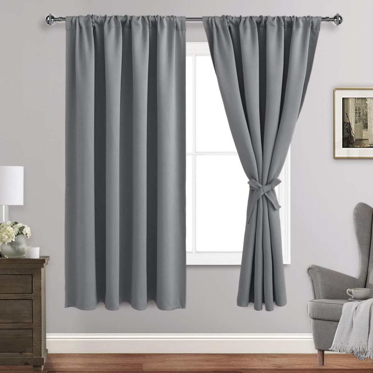 Jiuzhen Blackout Curtains For Bedroom - Thermal Insulated Room Darkening Rod Pocket Curtains For Living Room, Set Of 2 Panels With Tiebacks, 52 X 72 Inch Length, Light Grey