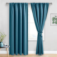 Jiuzhen Blackout Curtains For Bedroom - Thermal Insulated Room Darkening Rod Pocket Curtains For Living Room, Set Of 2 Panels With Tiebacks, 52 X 96 Inch Length, Stone Blue