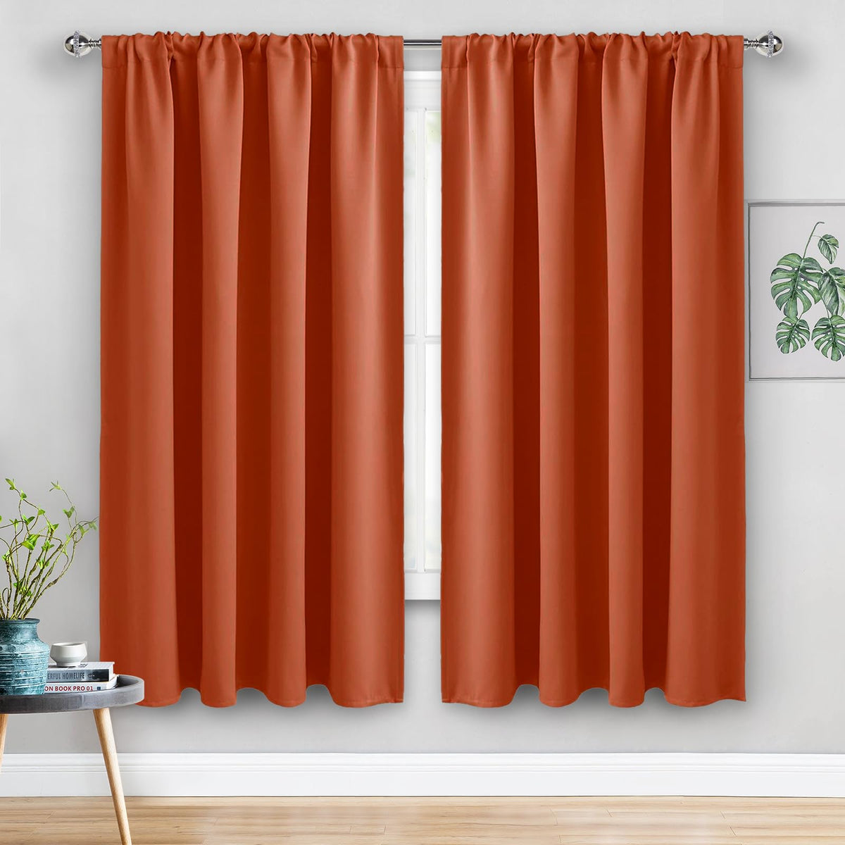 Jiuzhen Blackout Curtains For Bedroom - Thermal Insulated Room Darkening Rod Pocket Curtains For Living Room, Set Of 2 Panels With Tiebacks, 60 X 63 Inch Length, Burnt Ochre