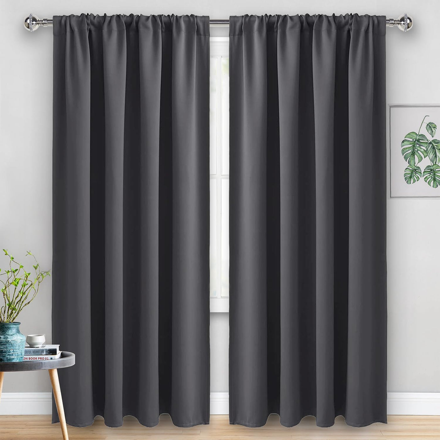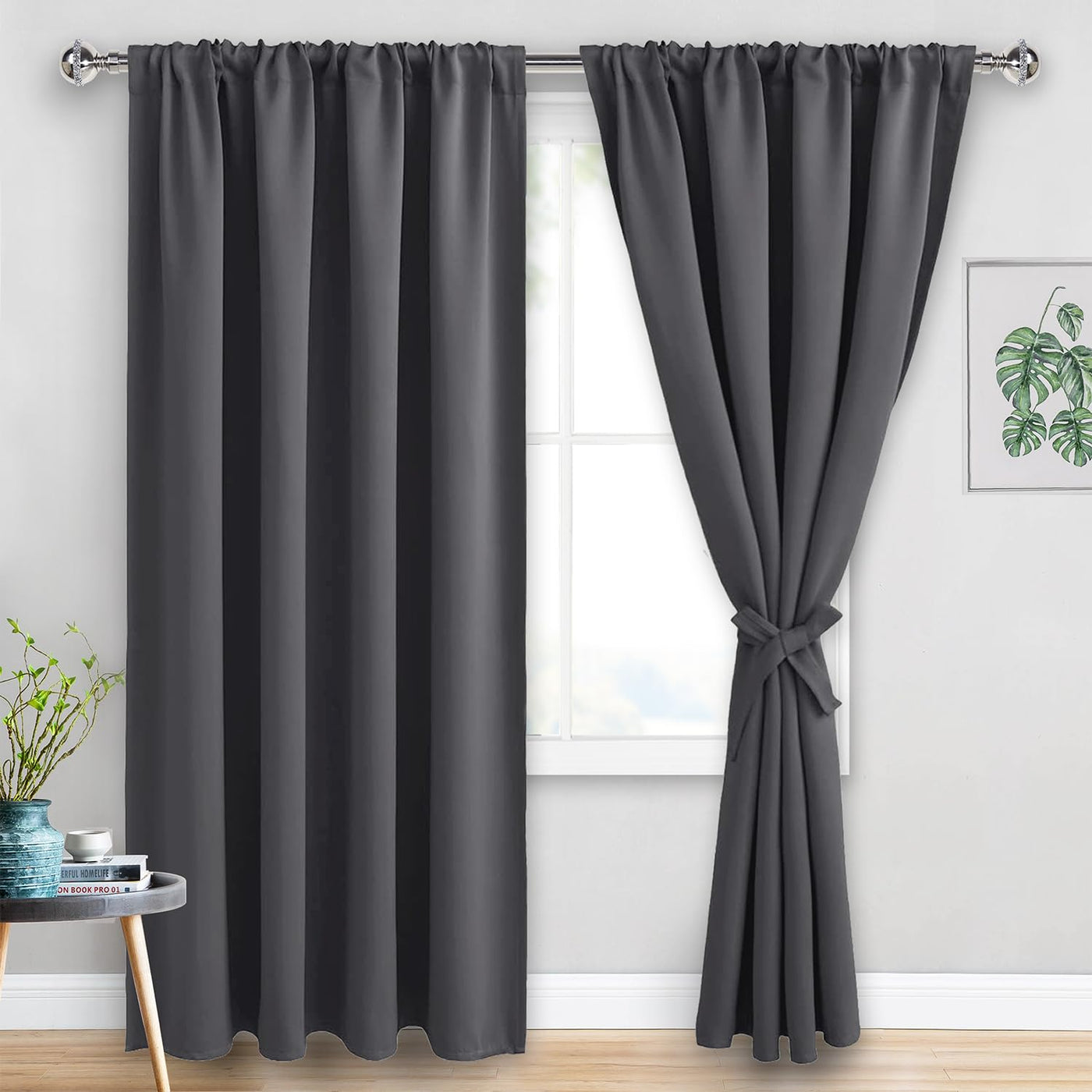 Jiuzhen Blackout Curtains For Bedroom - Thermal Insulated Room Darkening Rod Pocket Curtains For Living Room, Set Of 2 Panels With Tiebacks, 60 X 96 Inch Length, Dark Grey