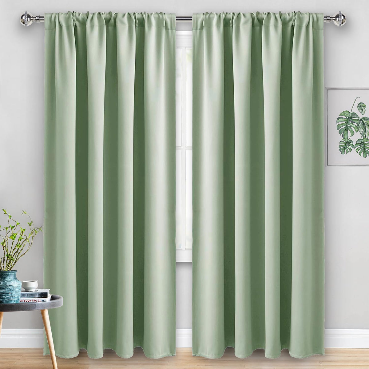 Jiuzhen Blackout Curtains For Bedroom - Thermal Insulated Room Darkening Rod Pocket Curtains For Living Room, Set Of 2 Panels With Tiebacks, 60 X 96 Inch Length, Light Green