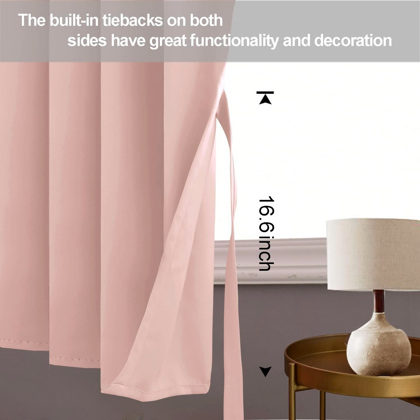Jiuzhen Blackout Curtains With Tiebacks - Thermal Insulated, Light Blocking And Noise Reducing Grommet Curtain Drapes For Bedroom And Living Room, Set Of 2 Panels, 34 X 24 Inch Length, Blush Pink