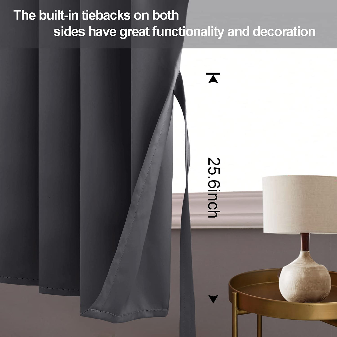JIUZHEN Blackout Curtains with Tiebacks are made of premium quality triple weaved microfiber blackout fabric which can block most of harmful sunlights and UV rays. Our room darkening curtains adopt an innovative design. The tiebacks are stitched to the curtains and combined with the curtains, thereby reducing your additional cost of purchasing tiebacks and eliminating the trouble that you sometimes cannot find tiebacks.