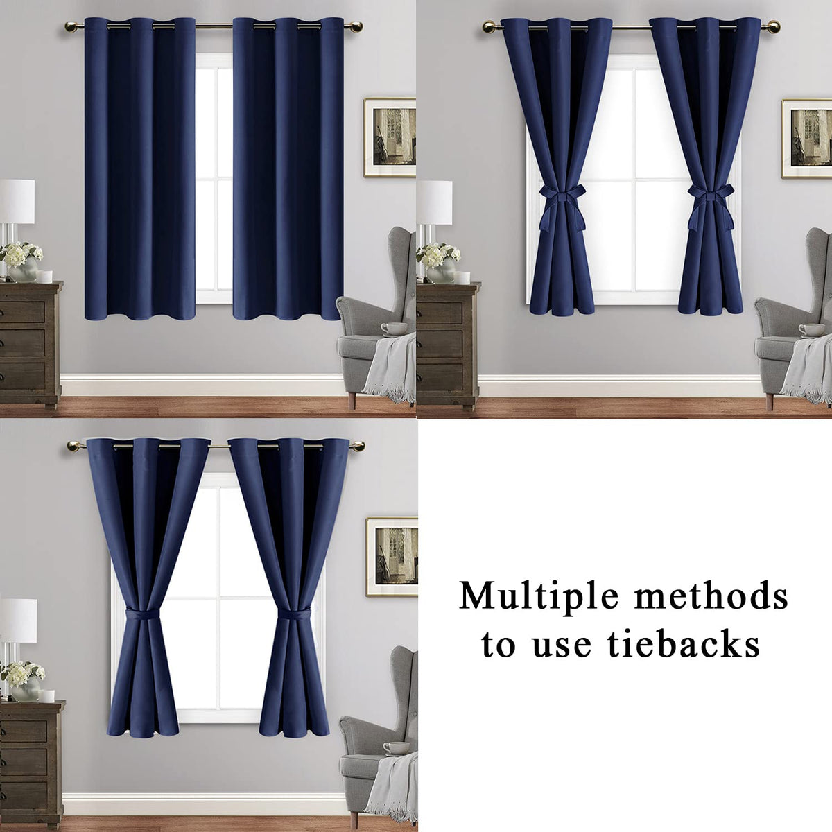 Jiuzhen Blackout Curtains With Tiebacks - Thermal Insulated, Light Blocking And Noise Reducing Grommet Curtain Drapes For Bedroom And Living Room, Set Of 2 Panels, 42 X 45 Inch Length, Navy Blue