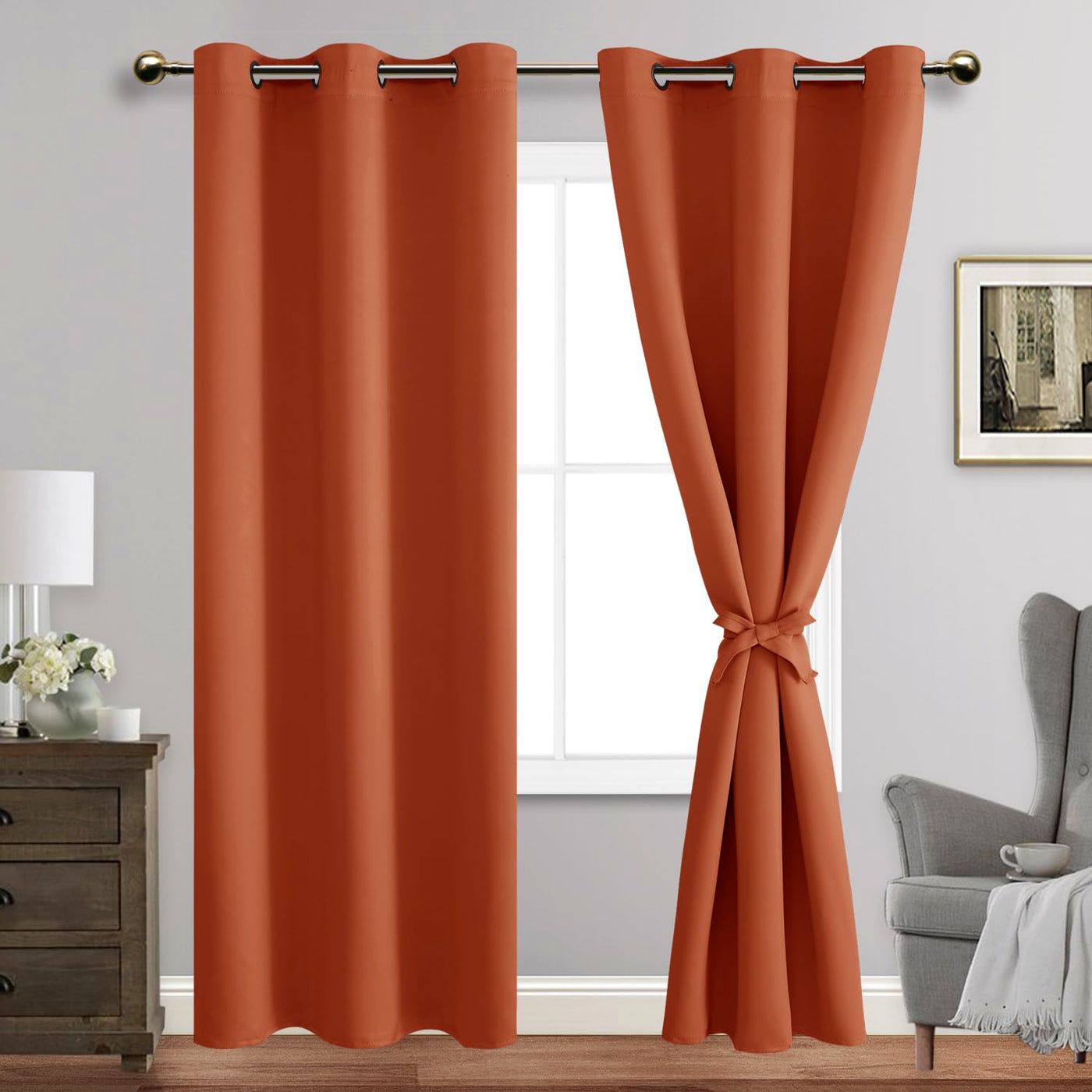 Jiuzhen Blackout Curtains With Tiebacks - Thermal Insulated, Light Blocking And Noise Reducing Grommet Curtain Drapes For Bedroom And Living Room, Set Of 2 Panels, 42 X 84 Inches Long, Caramel
