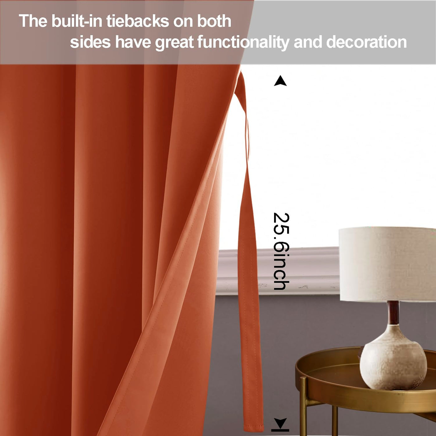 JIUZHEN Blackout Curtains with Tiebacks are made of premium quality triple weaved microfiber blackout fabric which can block most of harmful sunlights and UV rays. Our room darkening curtains adopt an innovative design. The tiebacks are stitched to the curtains and combined with the curtains, thereby reducing your additional cost of purchasing tiebacks and eliminating the trouble that you sometimes cannot find tiebacks.