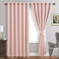 Jiuzhen Blackout Curtains With Tiebacks - Thermal Insulated, Light Blocking And Noise Reducing Grommet Curtain Drapes For Bedroom And Living Room, Set Of 2 Panels, 70 X 96 Inch Length, Blush Pink