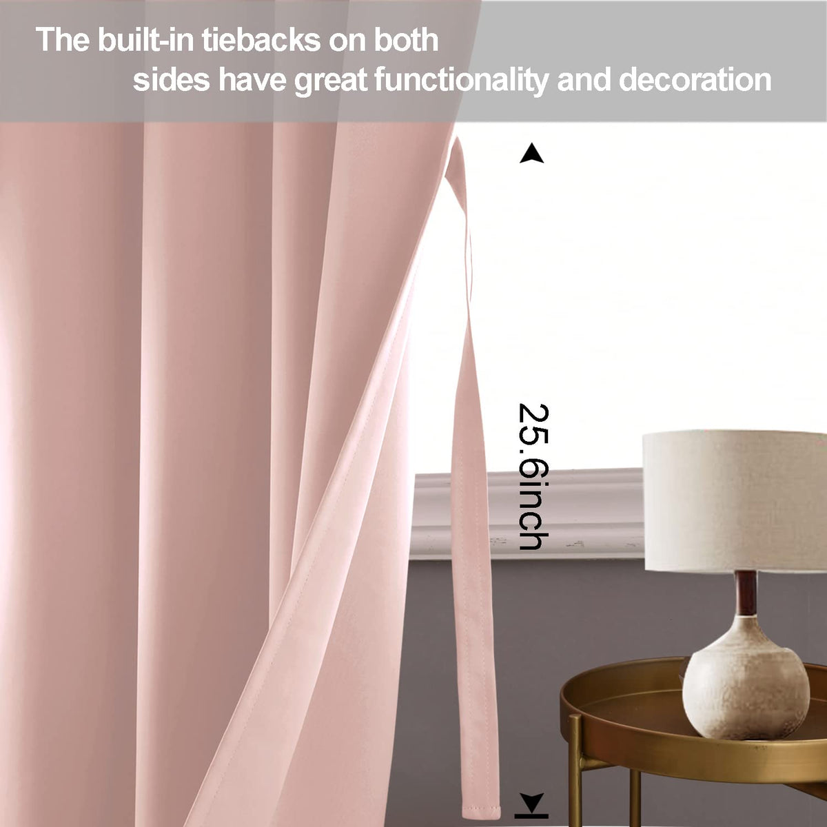 Jiuzhen Blackout Curtains With Tiebacks - Thermal Insulated, Light Blocking And Noise Reducing Grommet Curtain Drapes For Bedroom And Living Room, Set Of 2 Panels, Blush Pink, 52 X 84 Inch Length