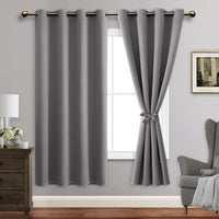 Jiuzhen Blackout Curtains With Tiebacks - Thermal Insulated, Light Blocking And Noise Reducing Grommet Curtain Drapes For Bedroom And Living Room, Set Of 2 Panels, Light Grey, 52 X 63 Inch Length
