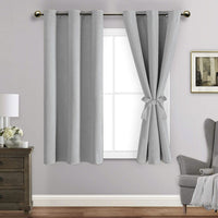 Jiuzhen Blackout Curtains With Tiebacks - Thermal Insulated, Light Blocking And Noise Reducing Grommet Curtain Drapes For Bedroom And Living Room, Set Of 2 Panels, Silver Grey, 38 X 45 Inch Length