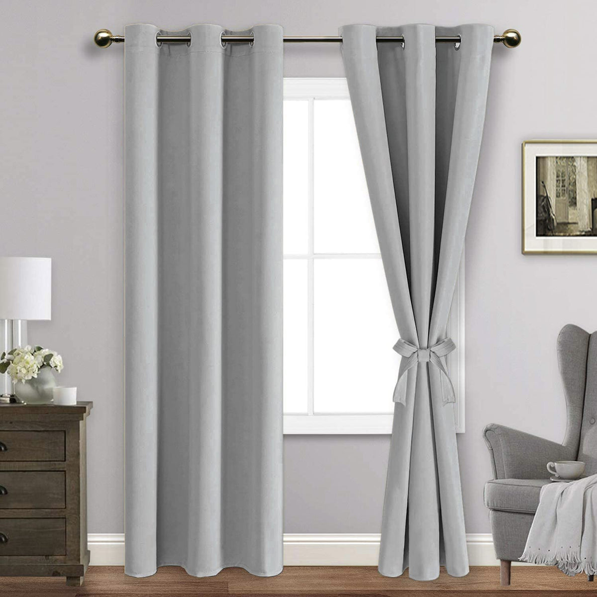 Jiuzhen Blackout Curtains With Tiebacks - Thermal Insulated, Light Blocking And Noise Reducing Grommet Curtain Drapes For Bedroom And Living Room, Set Of 2 Panels, Silver Grey, 42 X 84 Inch Length
