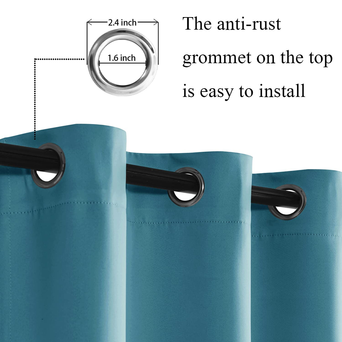 Jiuzhen Blackout Curtains With Tiebacks - Thermal Insulated, Light Blocking And Noise Reducing Grommet Curtain Drapes For Bedroom And Living Room, Set Of 2 Panels, Turquoise, 42 X 63 Inch Length