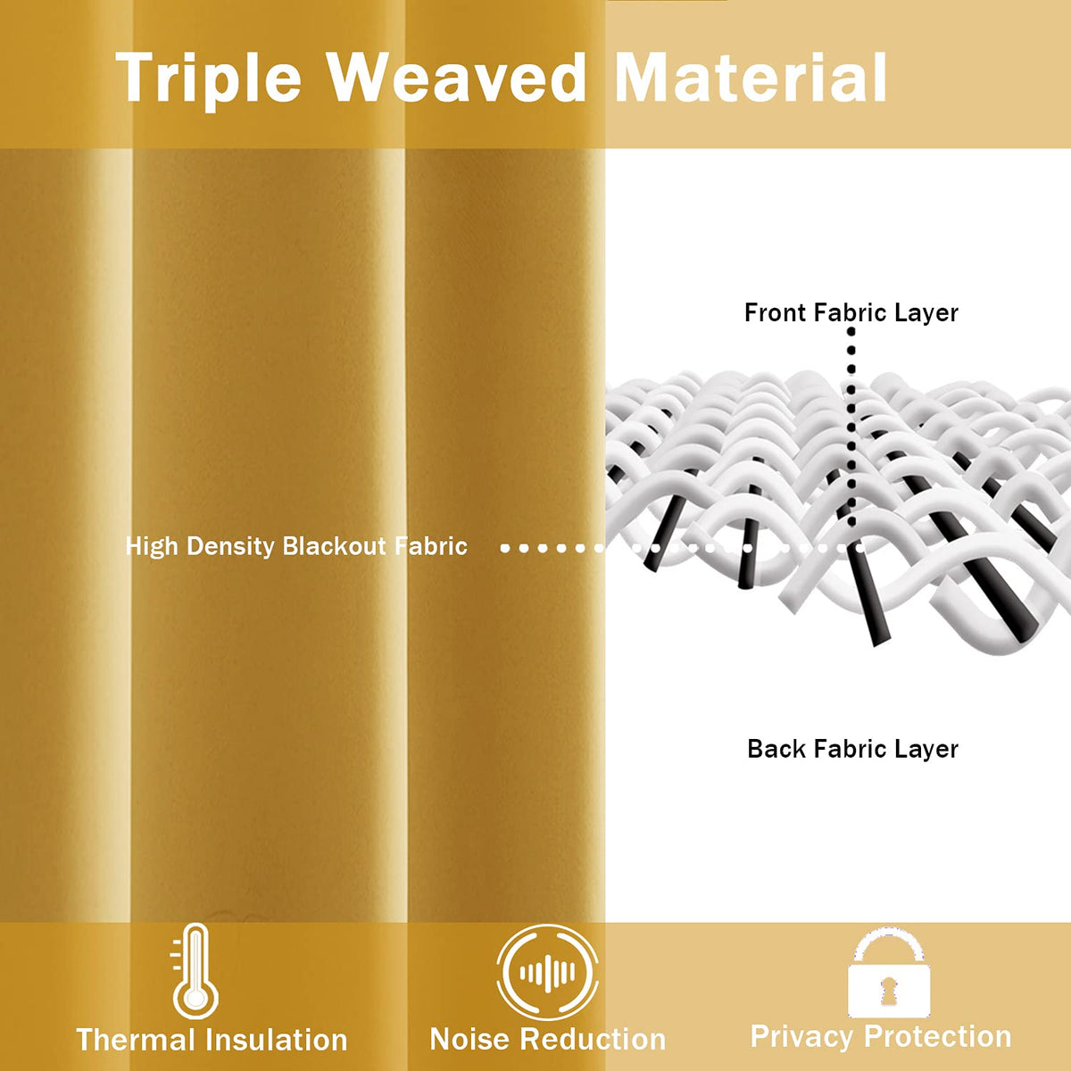 Thermal Insulated & Energy Saving Curtain: Triple weaved technology helps block most of sunlights, Keep you away from the light.
