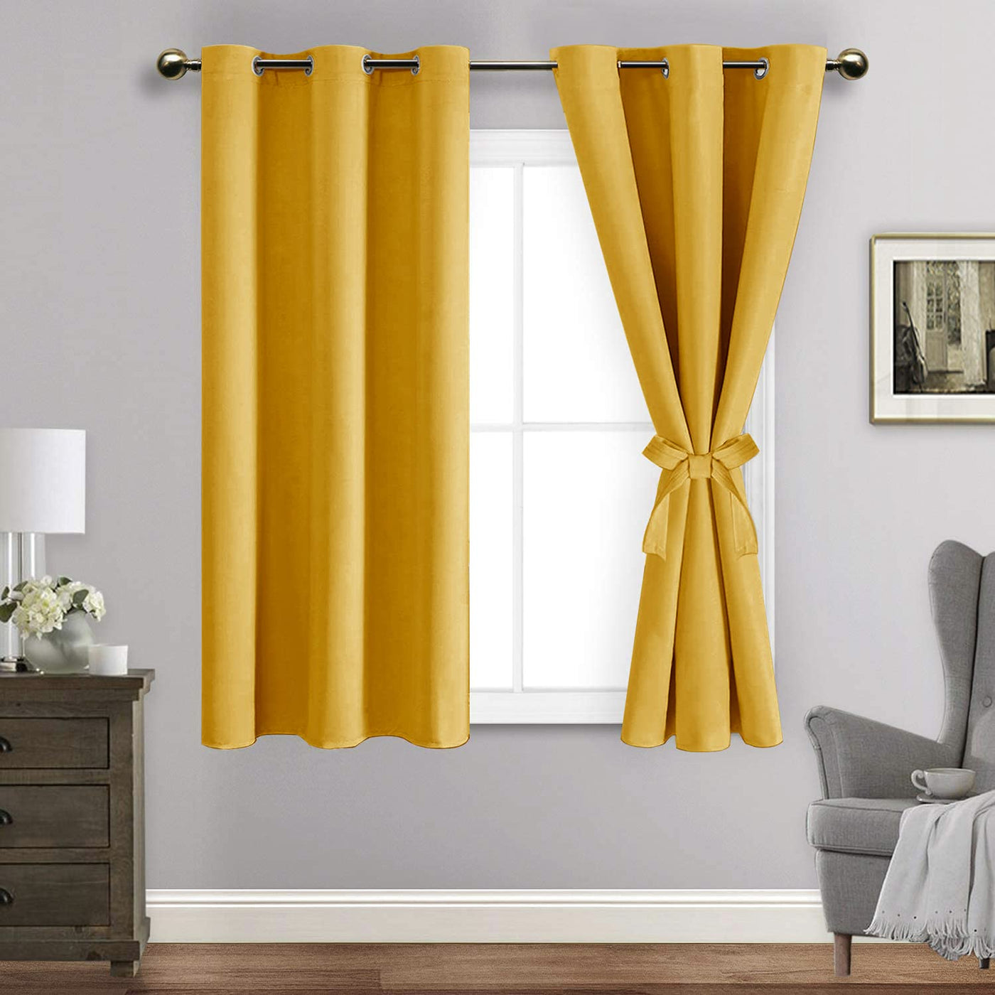 Jiuzhen Blackout Curtains With Tiebacks - Thermal Insulated, Light Blocking And Noise Reducing Grommet Curtain Drapes For Bedroom And Living Room, Set Of 2 Panels, Yellow, 42 X 54 Inch Length