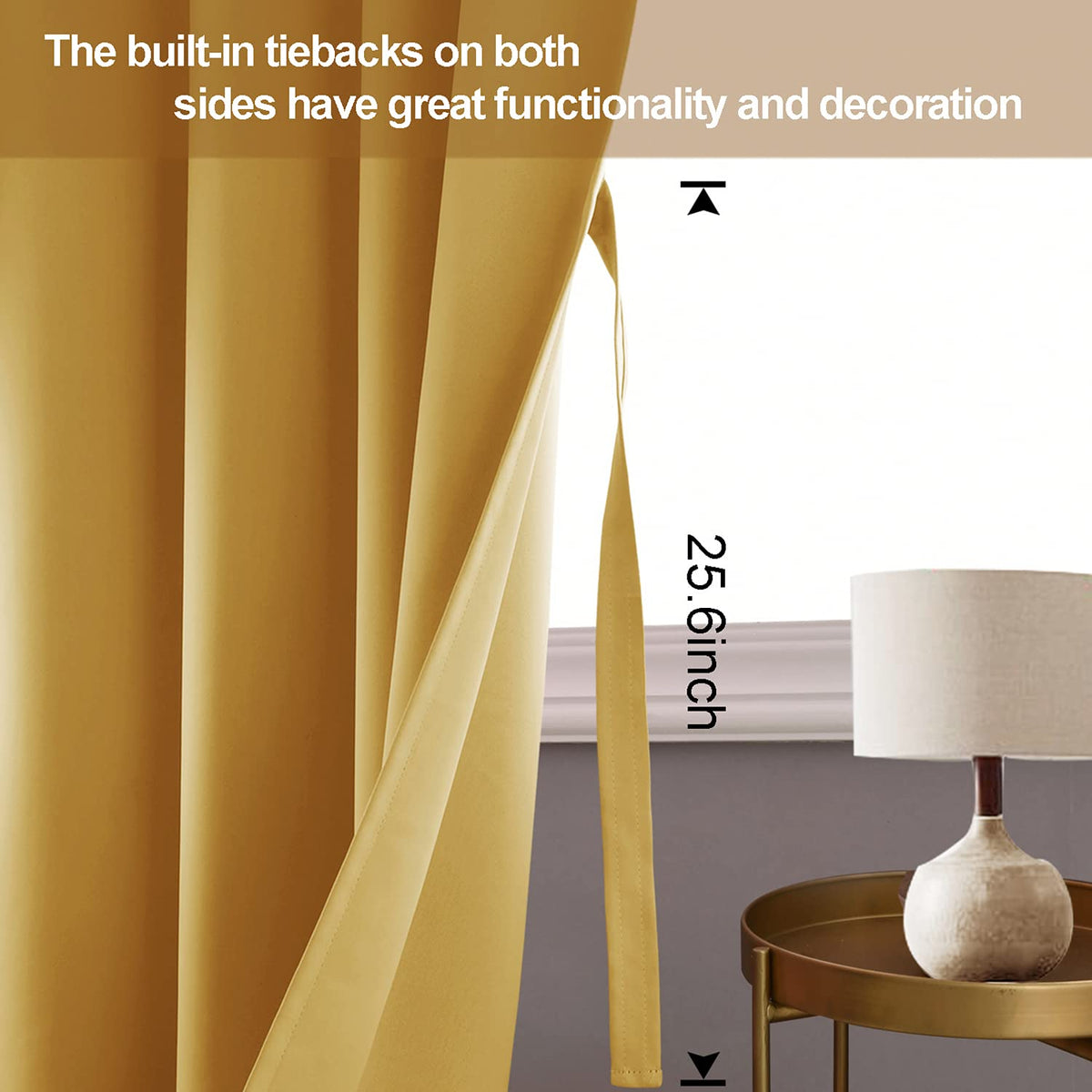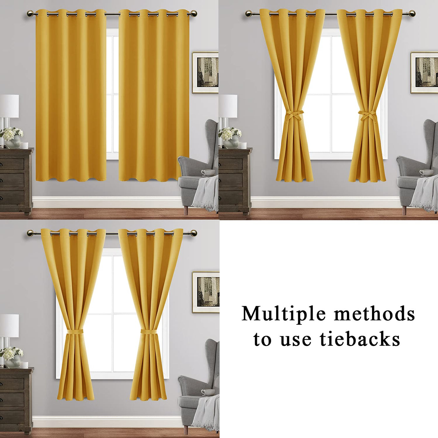 Jiuzhen Blackout Curtains With Tiebacks - Thermal Insulated, Light Blocking And Noise Reducing Grommet Curtain Drapes For Bedroom And Living Room, Set Of 2 Panels, Yellow, 52 X 63 Inch Length
