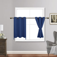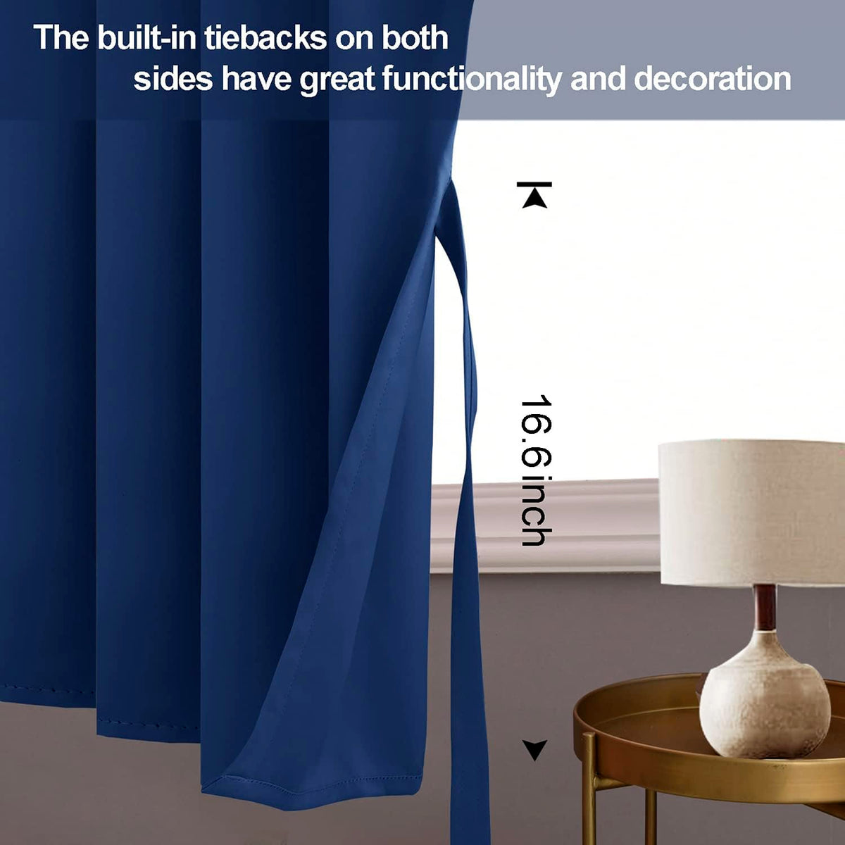 Jiuzhen Blackout Curtains With Tiebacks-Thermal Insulated, Light Blocking And Noise Reducing Grommet Curtain Drapes For Bedroom/Living Room, Set Of 2 Curtain Panels, 34 X 24 Inch Length, Classic Blue