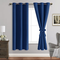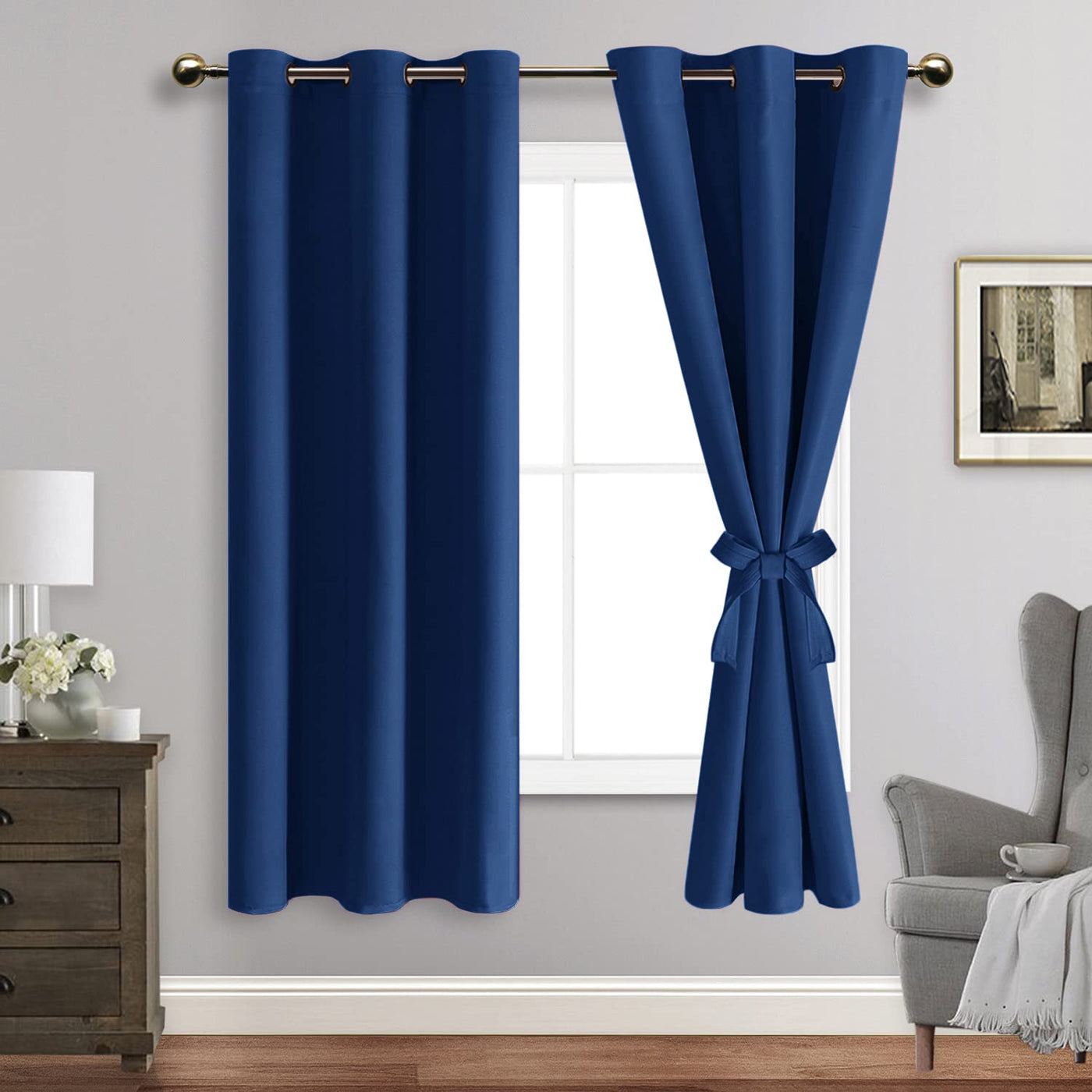 Jiuzhen Blackout Curtains With Tiebacks-Thermal Insulated, Light Blocking And Noise Reducing Grommet Curtain Drapes For Bedroom/Living Room, Set Of 2 Curtain Panels, 42X63 Inch Length, Classic Blue