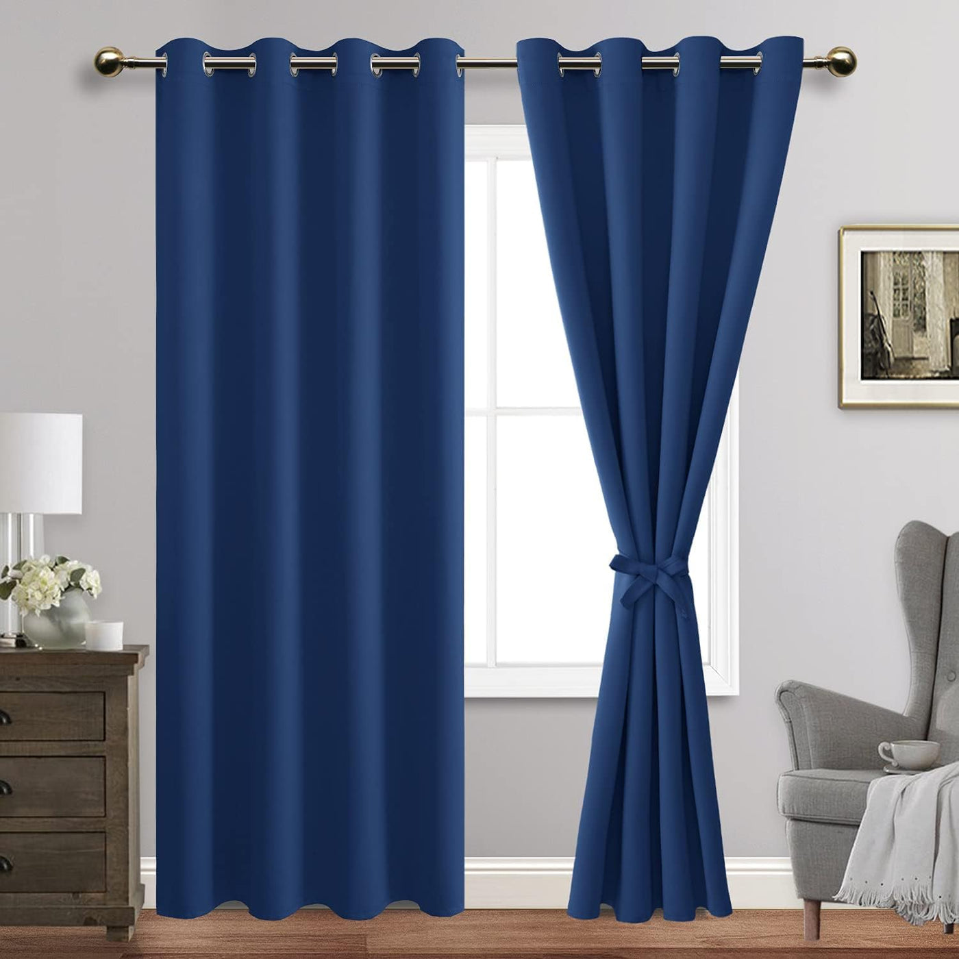 Jiuzhen Blackout Curtains With Tiebacks-Thermal Insulated, Light Blocking And Noise Reducing Grommet Curtain Drapes For Bedroom/Living Room, Set Of 2 Curtain Panels, 52X90 Inch Length, Classic Blue