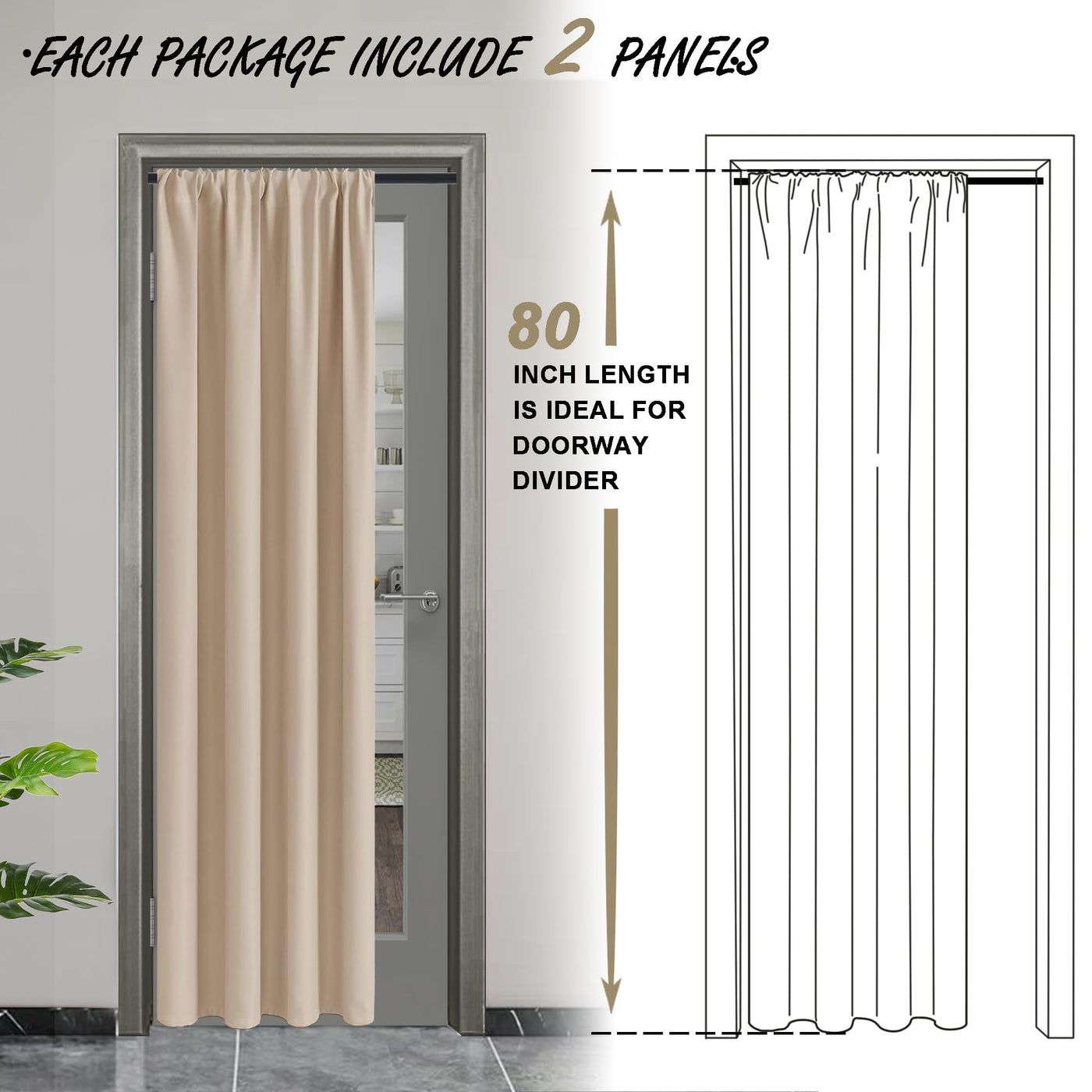 Jiuzhen Blackout Doorway Curtains 80 Inch Length - 2 Panels Thermal Insulated Privacy Soundproof Rod Pocket Closet Door Curtains Room Divider For Bedroom,Office, 42 X 80 Inches, 42 X 80 Inch, Beige