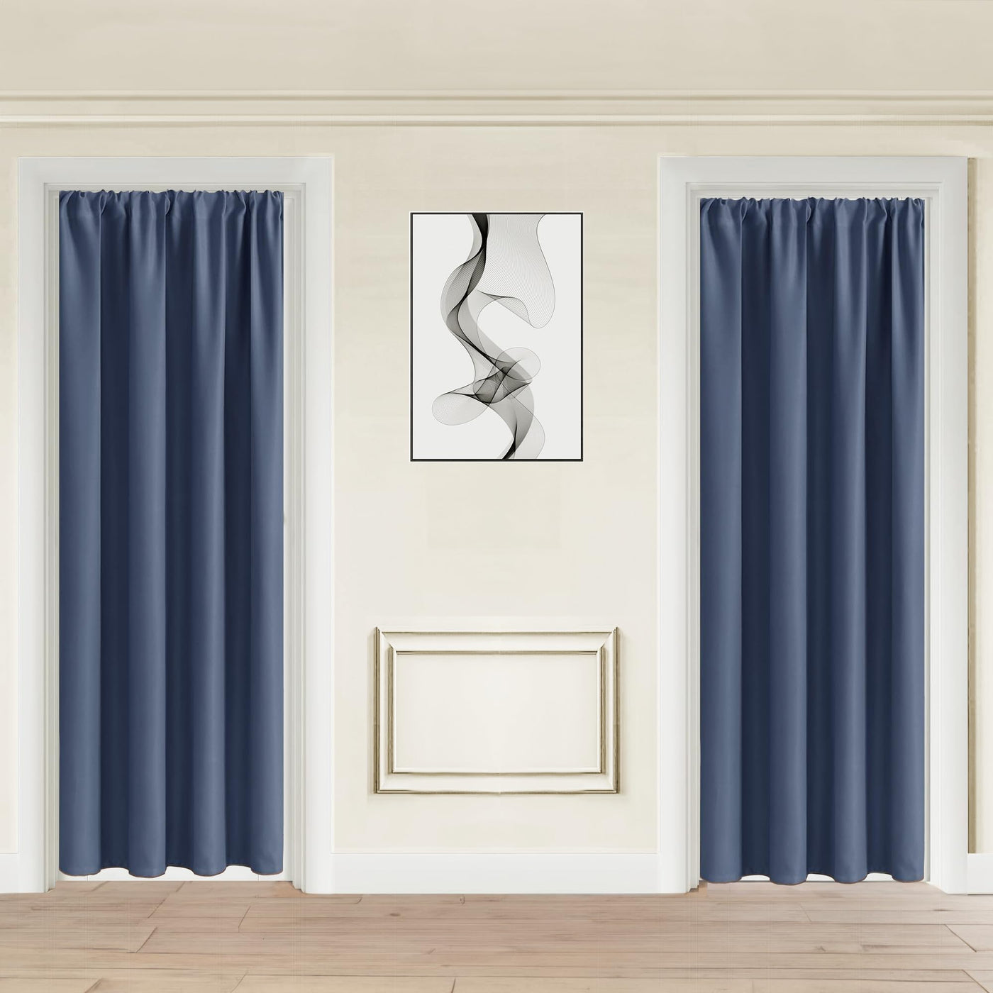 Jiuzhen Blackout Doorway Curtains 80 Inch Length - 2 Panels Thermal Insulated Privacy Soundproof Rod Pocket Closet Door Curtains Room Divider For Bedroom, Office, 42 X 80 Inches, Dusty Blue