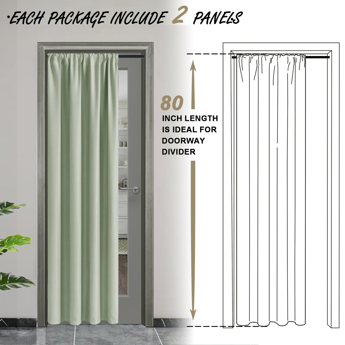Jiuzhen Blackout Doorway Curtains 80 Inch Length - 2 Panels Thermal Insulated Privacy Soundproof Rod Pocket Closet Door Curtains Room Divider For Bedroom,Office, 42 X 80 Inches, Light Green