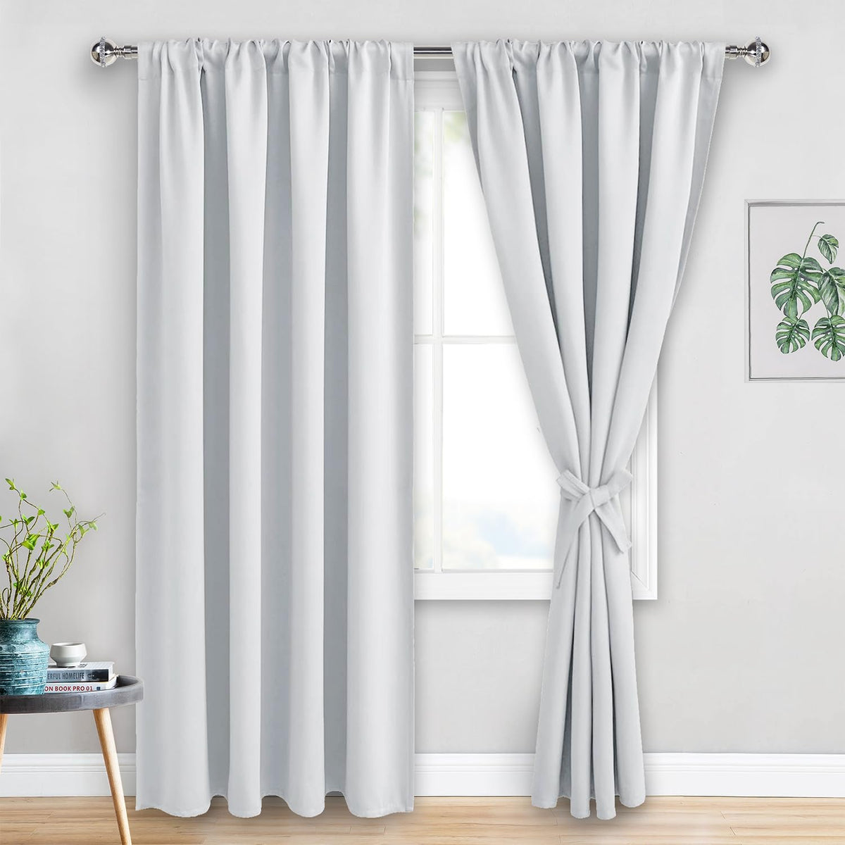 Jiuzhen Curtains For Bedroom - Thermal Insulated Room Darkening Noise Reducing, 52 X 84 Inch Blackout Curtains For Living Room, Light Blocking Drapes Set Of 2 Panels With Tiebacks, Greyish White