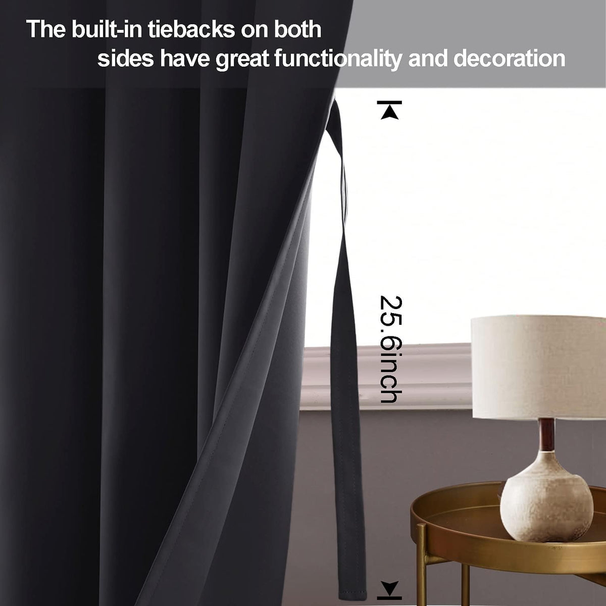 JIUZHEN Blackout Curtains with Tiebacks are made of premium quality triple weaved microfiber blackout fabric which can block most of harmful sunlights and UV rays. Our room darkening curtains adopt an innovative design. The tiebacks are stitched to the curtains and combined with the curtains, thereby reducing your additional cost of purchasing tiebacks and eliminating the trouble that you sometimes cannot find tiebacks.
