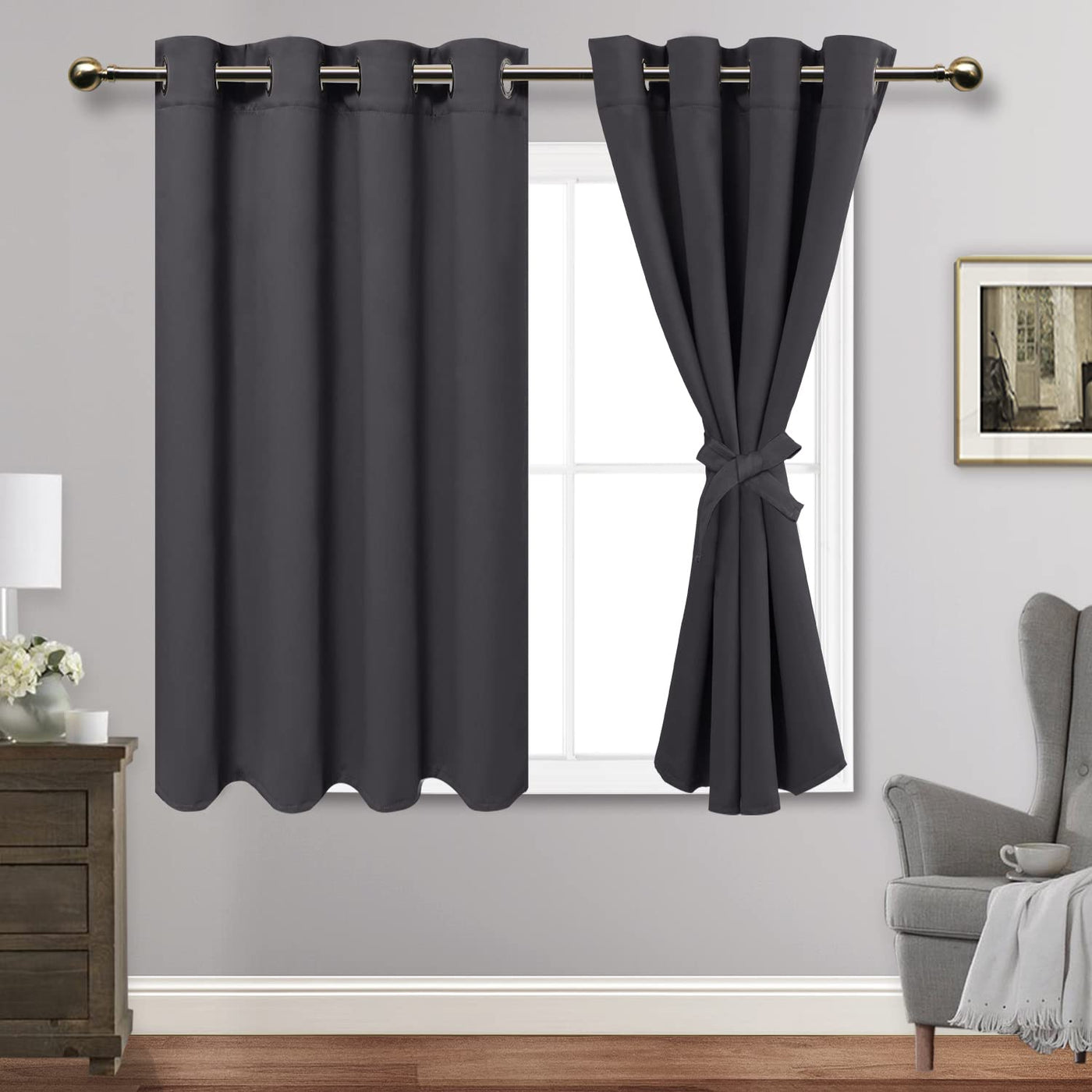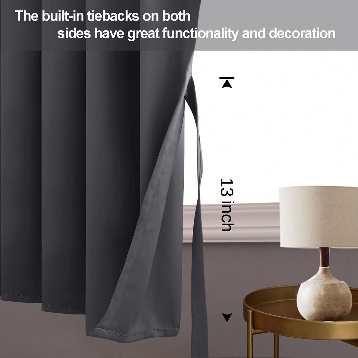 Jiuzhen Dark Grey Blackout Curtains With Tiebacks Thermal Insulated, Light Blocking And Noise Reducing Grommet Curtains For Bedroom And Living Room, Set Of 2 Window Curtain Panels, 52 X 54 Inch Length
