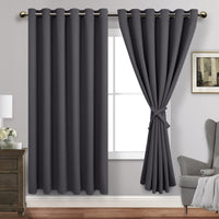 Jiuzhen Dark Grey Blackout Curtains With Tiebacks Thermal Insulated, Light Blocking And Noise Reducing Grommet Curtains For Bedroom And Living Room, Set Of 2 Window Curtain Panels, 70 X 72 Inch Length