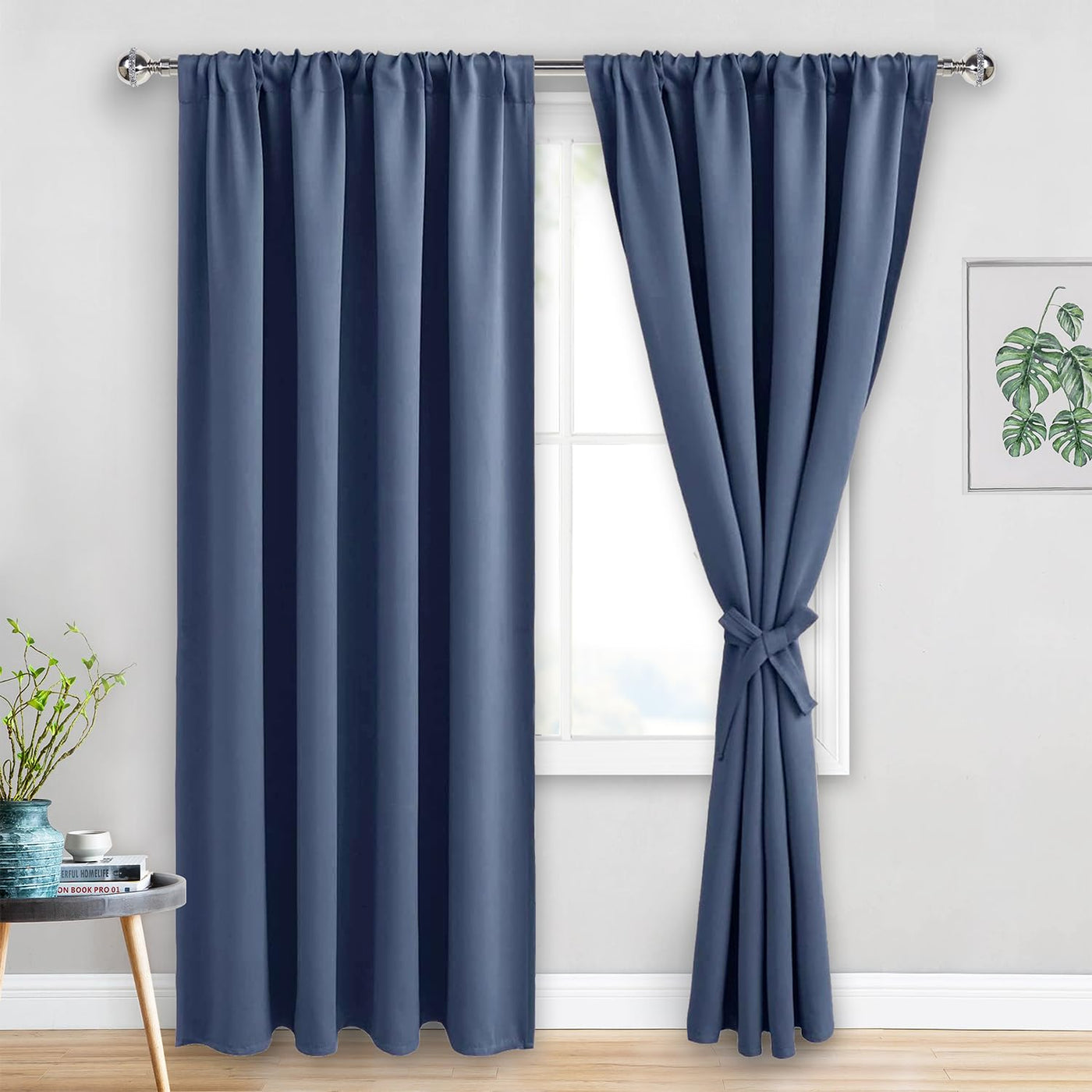 Jiuzhen Dusty Blue Blackout Curtains For Bedroom - Thermal Insulated Room Darkening Noise Reducing, 52 X 84 Inch Length Curtains For Living Room, Set Of 2 Panels With Tiebacks, Dusty Blue
