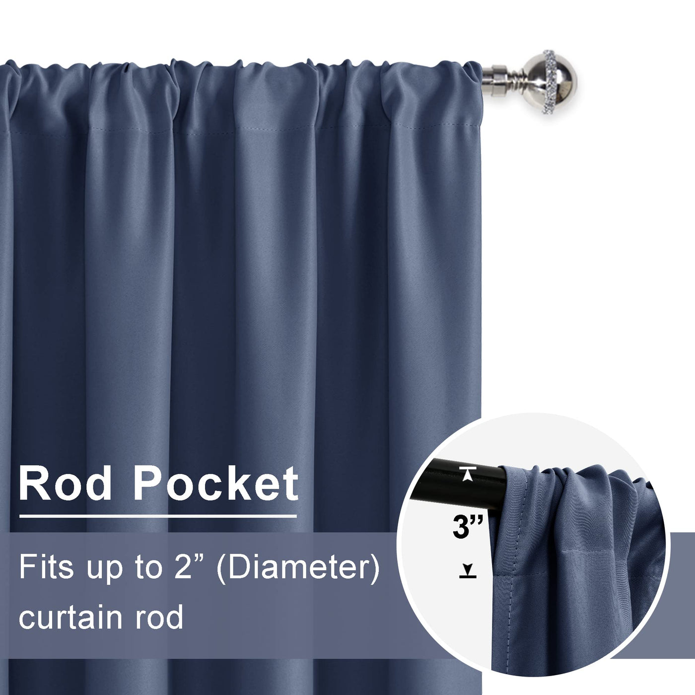 Jiuzhen Dusty Blue Blackout Curtains For Bedroom - Thermal Insulated Room Darkening Rod Pocket Curtains For Living Room, Set Of 2 Panels With Tiebacks, 42 X 84 Inch Length, Dusty Blue