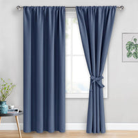 JIUZHEN Blackout Curtains with Tiebacks are made of premium quality triple weaved microfiber blackout fabric which can block most of harmful sunlights and UV rays. Our room darkening curtains adopt an innovative design. The tiebacks are stitched to the curtains and combined with the curtains, thereby reducing your additional cost of purchasing tiebacks and eliminating the trouble that you sometimes cannot find tiebacks.