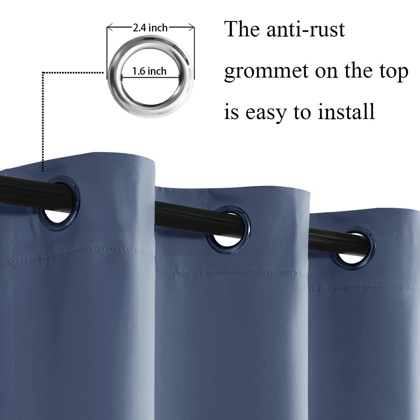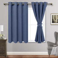 Jiuzhen Dusty Blue Blackout Curtains With Tiebacks,Thermal Insulated, Light Blocking And Noise Reducing Grommet Curtain For Bedroom And Living Room, Set Of 2 Window Curtain Panels, 52 X 45 Inch Length
