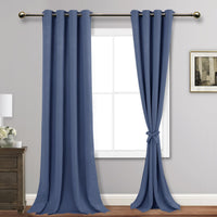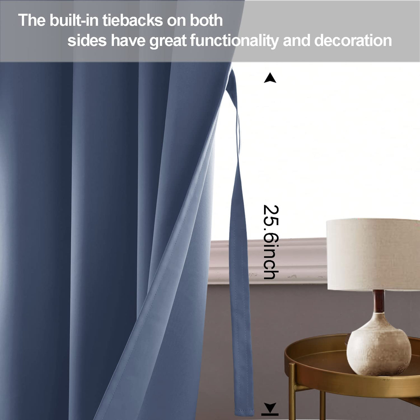 Jiuzhen Dusty Blue Blackout Curtains With Tiebacks-Thermal Insulated, Light Blocking And Noise Reducing Grommet Curtains For Bedroom And Living Room, Set Of 2 Window Curtain Panel, 52 X 96 Inch Length