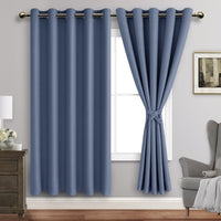 Jiuzhen Dusty Blue Blackout Curtains With Tiebacks Thermal Insulated,Light Blocking And Noise Reducing Grommet Curtains For Bedroom And Living Room, Set Of 2 Window Curtain Panels, 60 X 72 Inch Length