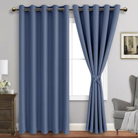 Jiuzhen Dusty Blue Blackout Curtains With Tiebacks-Thermal Insulated, Light Blocking And Noise Reducing Grommet Curtains For Bedroom And Living Room, Set Of 2 Window Curtain Panels,60 X 84 Inch Length