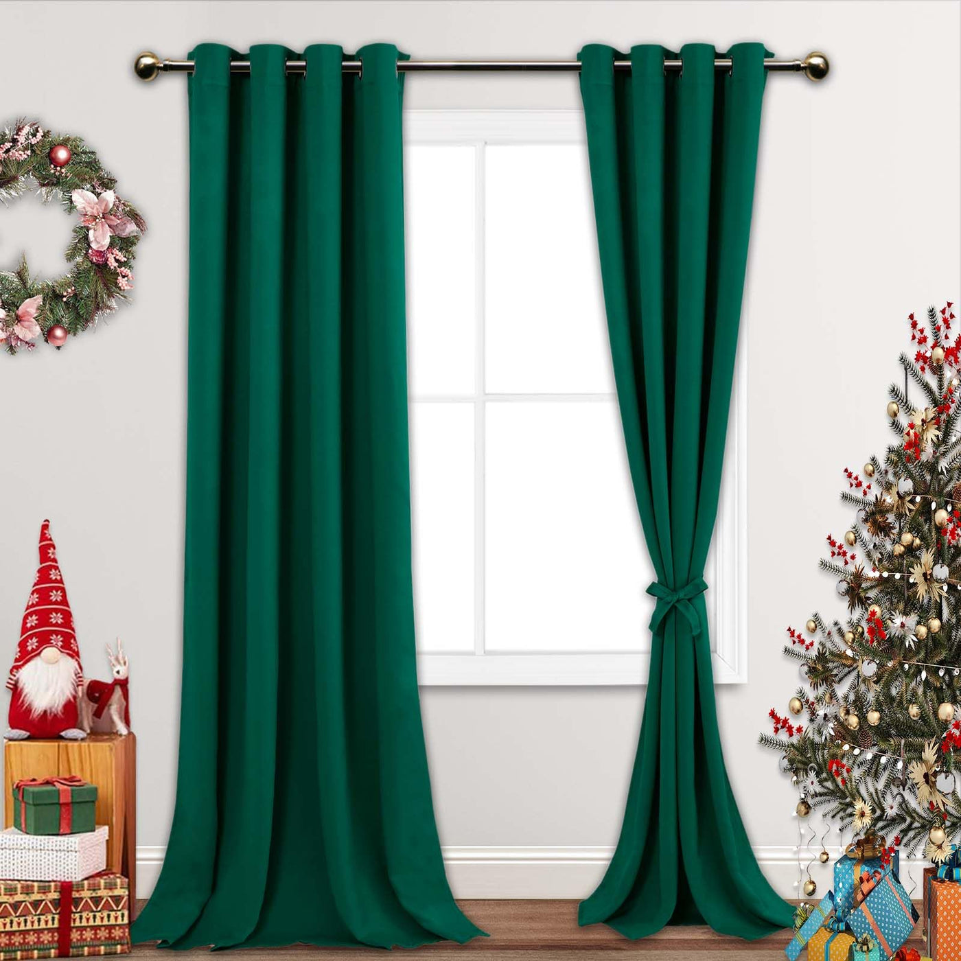 Jiuzhen Forest Green Blackout Curtains With Tiebacks, Light Blocking And Noise Reducing Grommet Curtains For Bedroom And Living Room, Set Of 2 Window Curtain Panels, 52 X 96 Inch Length