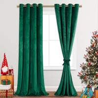 Jiuzhen Green Velvet Curtains 90 Inches - Super Soft Retro Blackout Velvet Drapes Room Darkening Window Drapes For Living Room/P