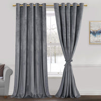 Jiuzhen Grey 60 X 84 Inches Velvet Blackout Curtains - Extra Wide Insulated Window Covering Noise Absorbing & Privacy Protect Dr