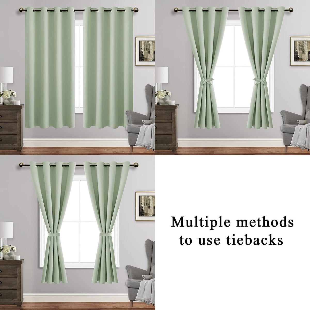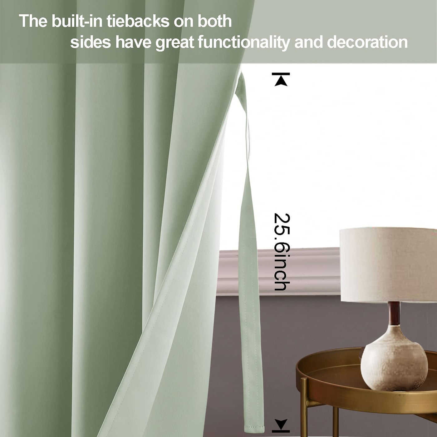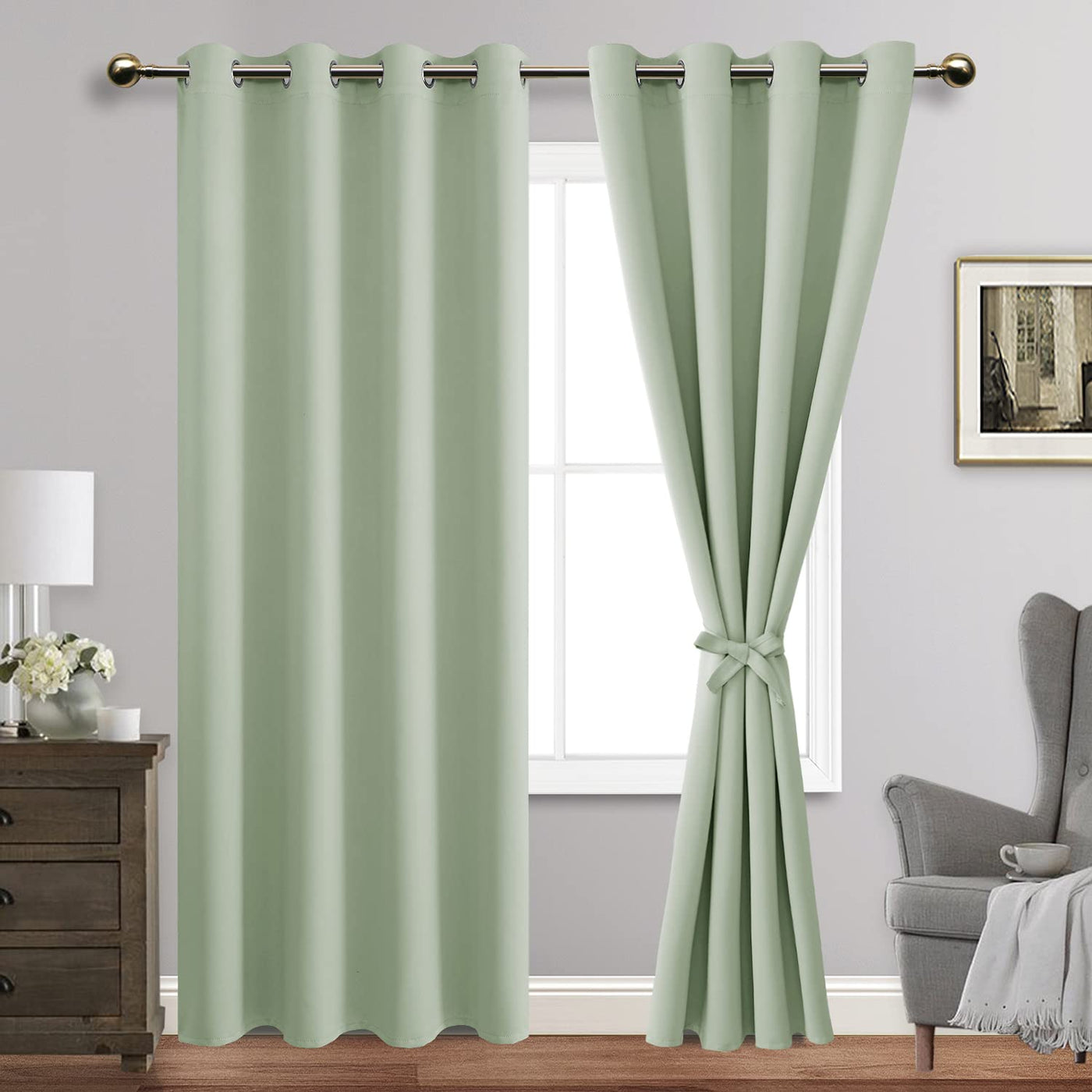 Jiuzhen Light Green Blackout Curtains With Tiebacks-Thermal Insulated, Light Blocking And Noise Reducing Grommet Curtain Drapes For Bedroom And Living Room, Set Of 2 Curtain Panels, 52X84 Inch Length