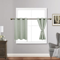 Jiuzhen Light Green Blackout Curtains With Tiebacks Thermal Insulated, Light Blocking And Noise Reducing Grommet Curtains For And Living Room, Set Of 2 Window Curtain Panels, 34 X 24 Inch Length