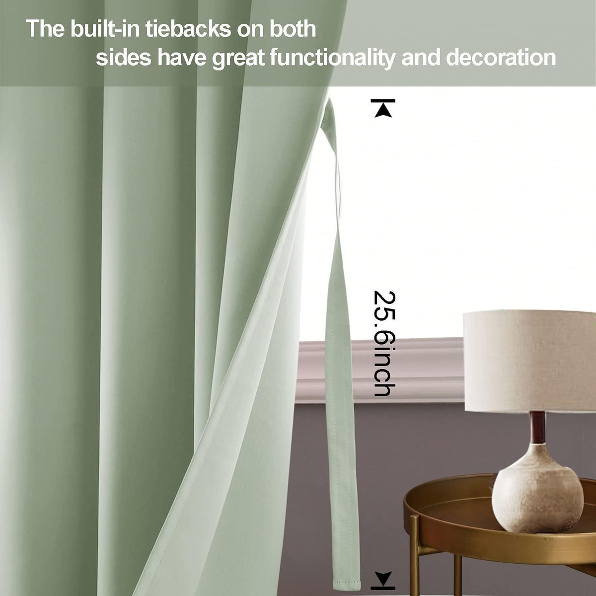 Jiuzhen Light Green Blackout Curtains With Tiebacks Thermal Insulated, Light Blocking And Noise Reducing Grommet Curtains For And Living Room, Set Of 2 Window Curtain Panels, 60 X 96 Inch Length