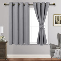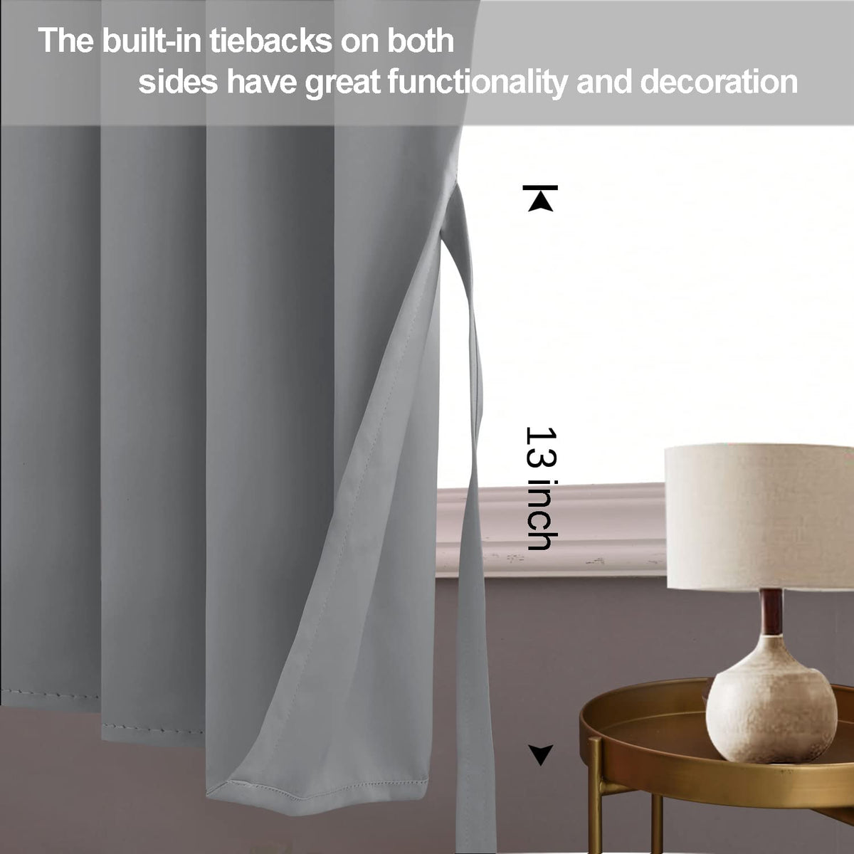 Jiuzhen Light Grey Blackout Curtains With Tiebacks Thermal Insulated, Light Blocking And Noise Reducing Grommet Curtain For Bedroom And Living Room, Set Of 2 Window Curtain Panels, 52 X 45 Inch Length