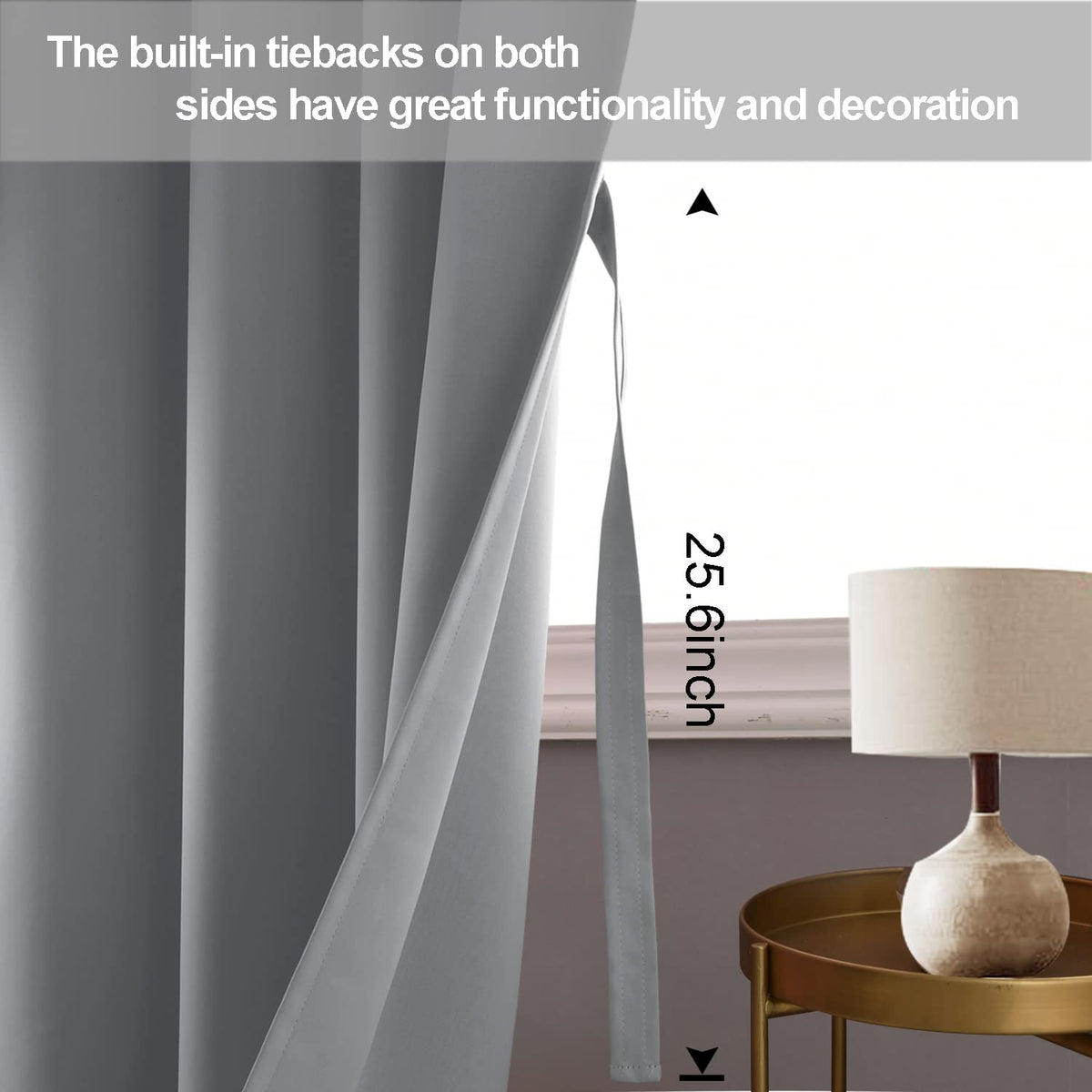 Jiuzhen Light Grey Blackout Curtains With Tiebacks Thermal Insulated,Light Blocking And Noise Reducing Grommet Curtains For Bedroom And Living Room, Set Of 2 Window Curtain Panels, 60 X 84 Inch Length