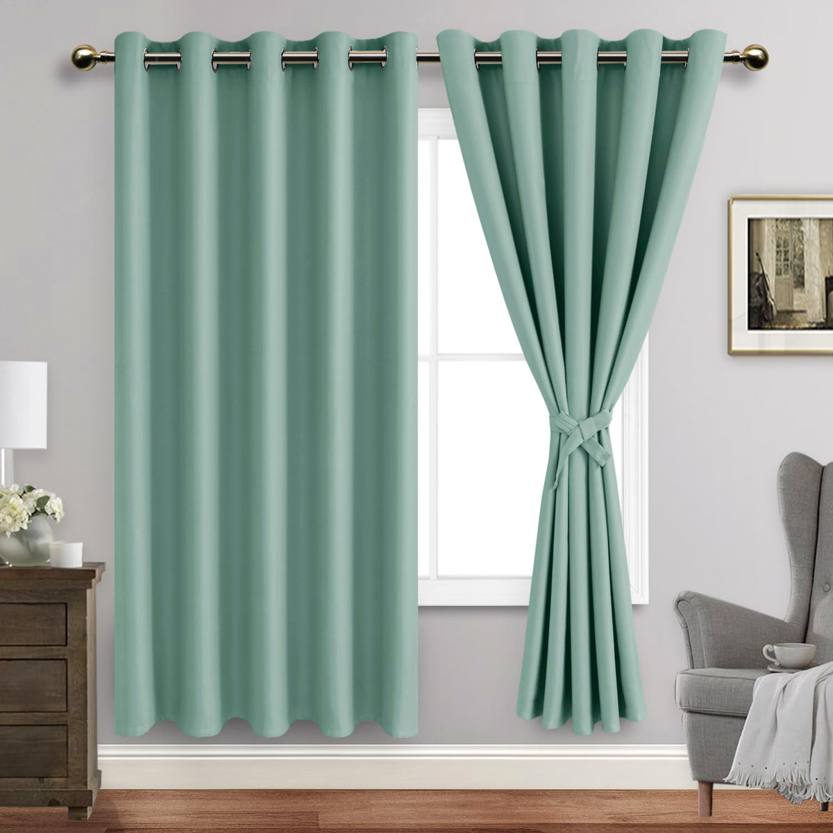 Jiuzhen Light Sage Blackout Curtains With Tiebacks Thermal Insulated, Light Blocking And Noise Reducing Grommet Curtains For And Living Room, Set Of 2 Window Curtain Panels, 60 X 72 Inch Length