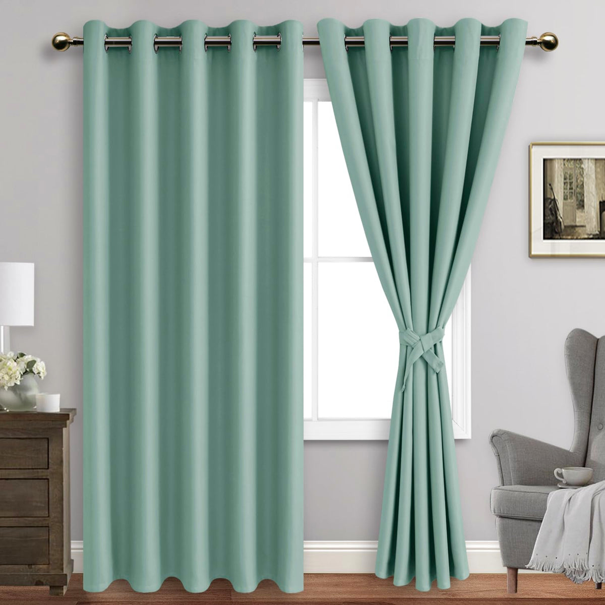 Jiuzhen Light Sage Blackout Curtains With Tiebacks Thermal Insulated, Light Blocking And Noise Reducing Grommet Curtains For And Living Room, Set Of 2 Window Curtain Panels, 60 X 96 Inch Length