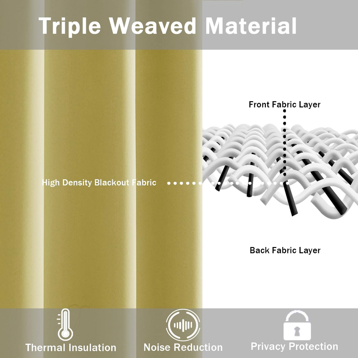 Q: How do these blackout curtains help with energy efficiency?A: The thermal insulated design of these curtains utilizes triple weaved technology to block sunlight and maintain indoor temperatures, reducing reliance on heating and cooling systems and helping to lower energy bills.